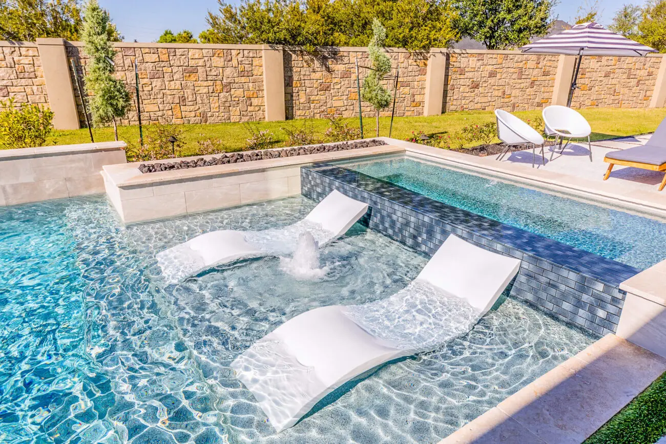- In-water lounge chairs or bench seating